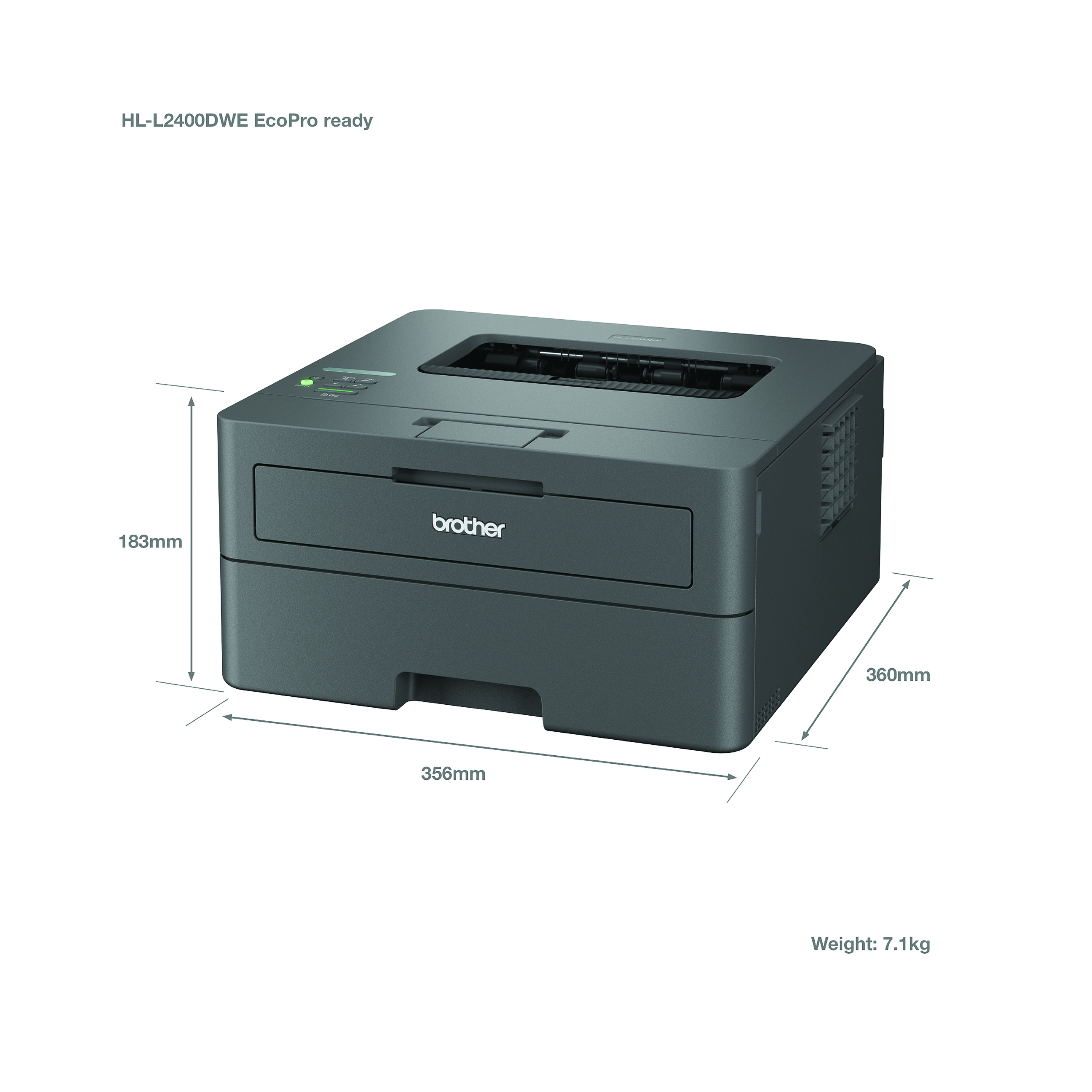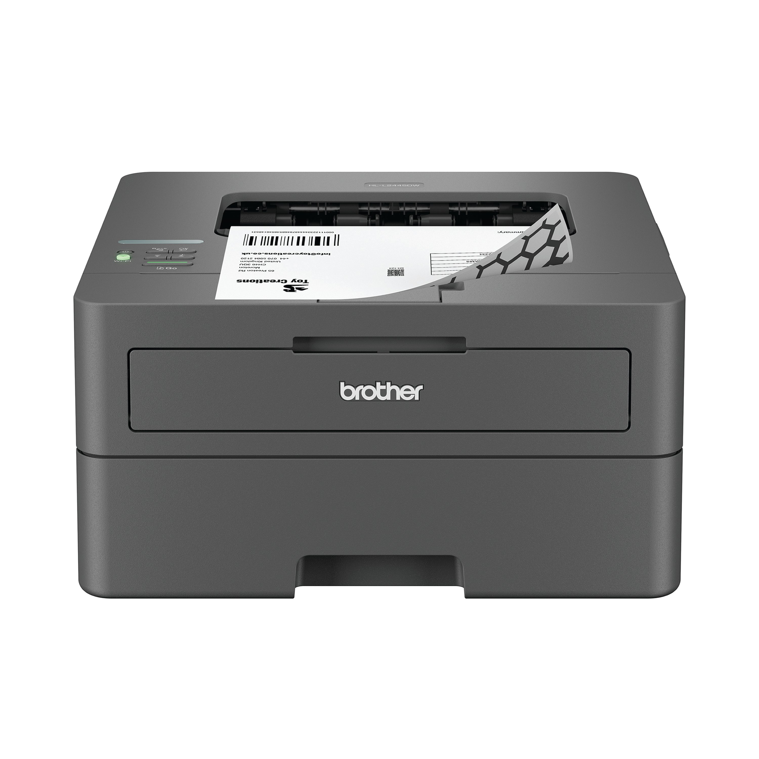 Work smarter from anywhere at home or in the office with the easily connected Brother HL-L2445DW mono A4 laser printer. With a 64MB memory. The HL-L2445DW provides a range of robust features. Secure by design, it uses triple-layer security at a device, network and document level, for peace of mind and guarantees that the integrity of your data is maintained. Hosting a range of efficiency-boosting features, this mono laser printer saves you time with fast flawless printing, automatic 2-sided print of up to 16 sides per minute and a generous 250 sheet paper tray capacity. Print speed of up to 32 ppm. A quiet mode to reduce the printing noise. Connect with Hi-Speed USB 2.0, Wireless, Wi-Fi Direct. Mobile and Web connectivity: Brother Mobile Connect, Brother Print Service Plugin, Mopria (Android), Brother Mobile Connect (iPad/iphone), Apple AirPrint. A quiet mode to reduce the printing noise. All controlled via a 1 line LCD with keys. Supplied with a 1,200 page yield toner.