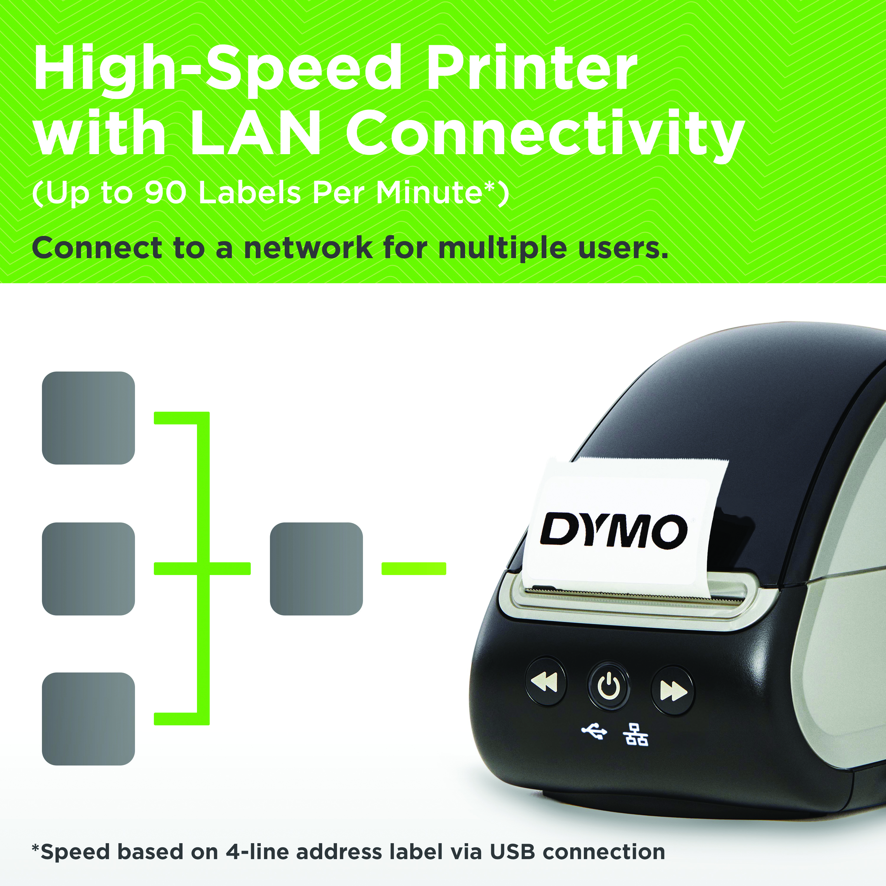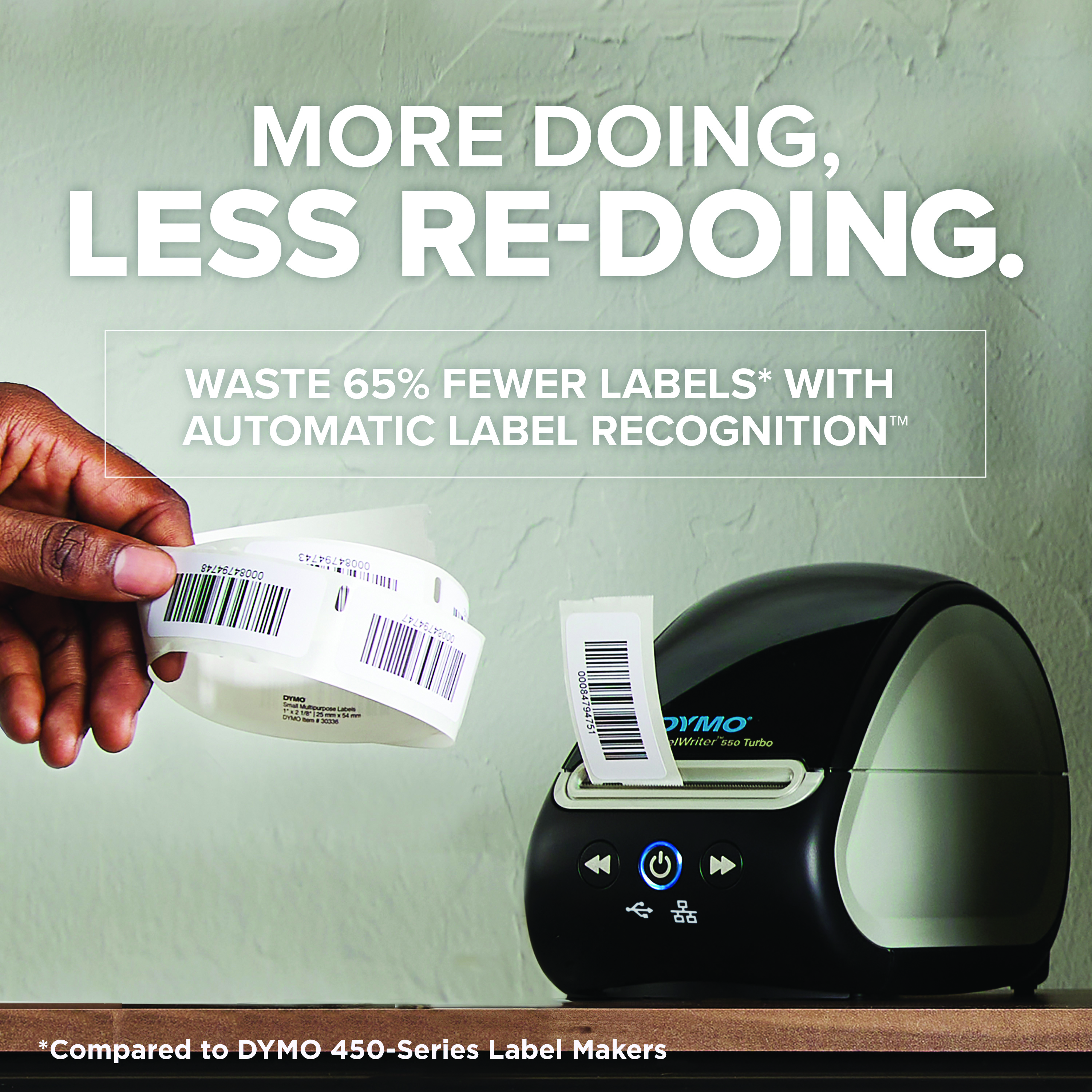 The Dymo LabelWriter 550 Turbo with direct thermal printing technology eliminates the need for ink or toner. Create and customize 60+ label types through USB connection or connect to a network through LAN connection with free Dymo Connect for desktop software. Printing up to 90 labels per minute, you can also print crystal clear barcodes, text, graphics and more with 300 dpi resolution. The Dymo LabelWriter 550 Turbo automatically recognises and displays label size and number of labels remaining for easy, stress-free printing. Compatible with Windows 8 or later and Mac OS X v10.14 or later.