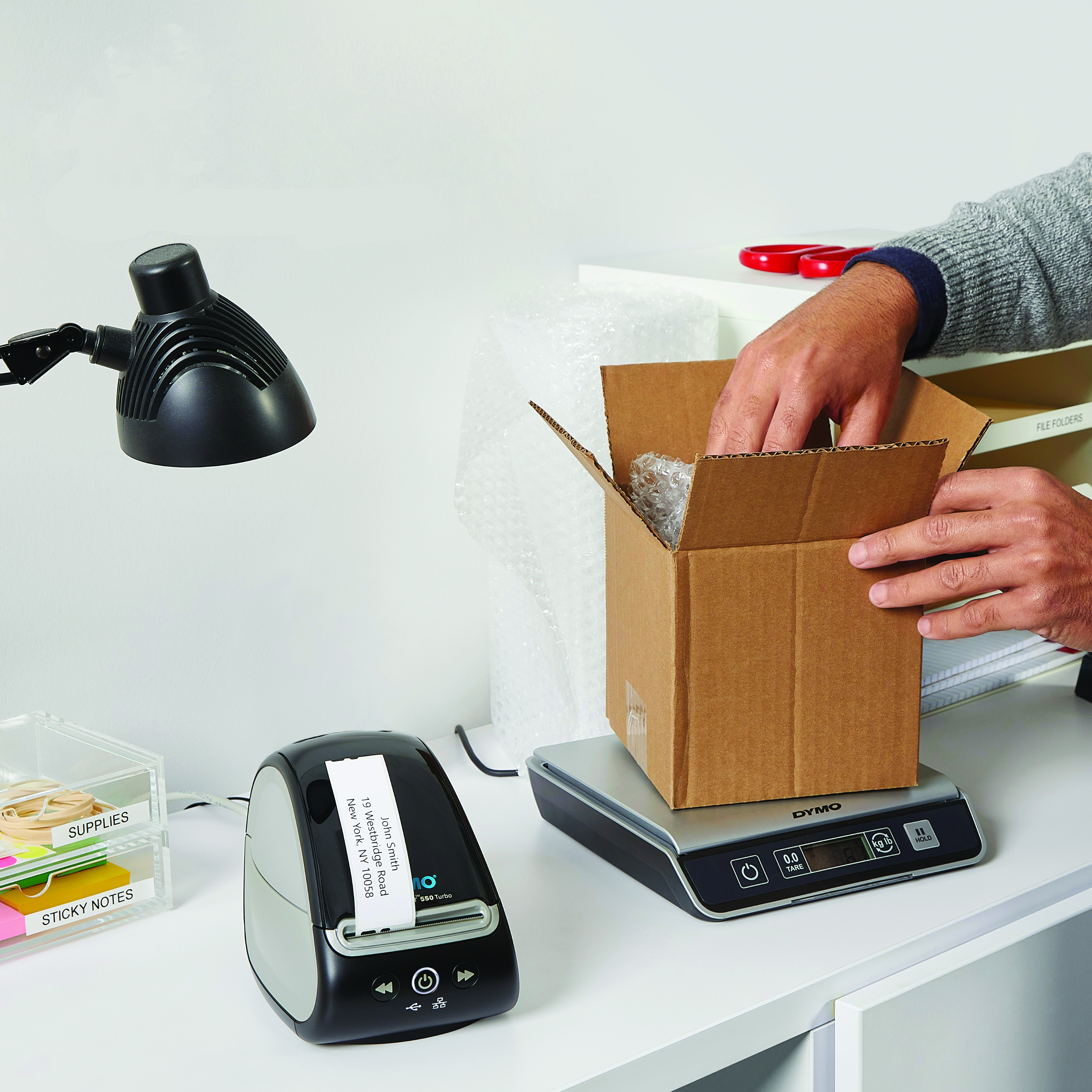 Contents: LabelWriter 550 Turbo label printer, address labels starter roll, adapter, power cable, USB cable and quick start guide