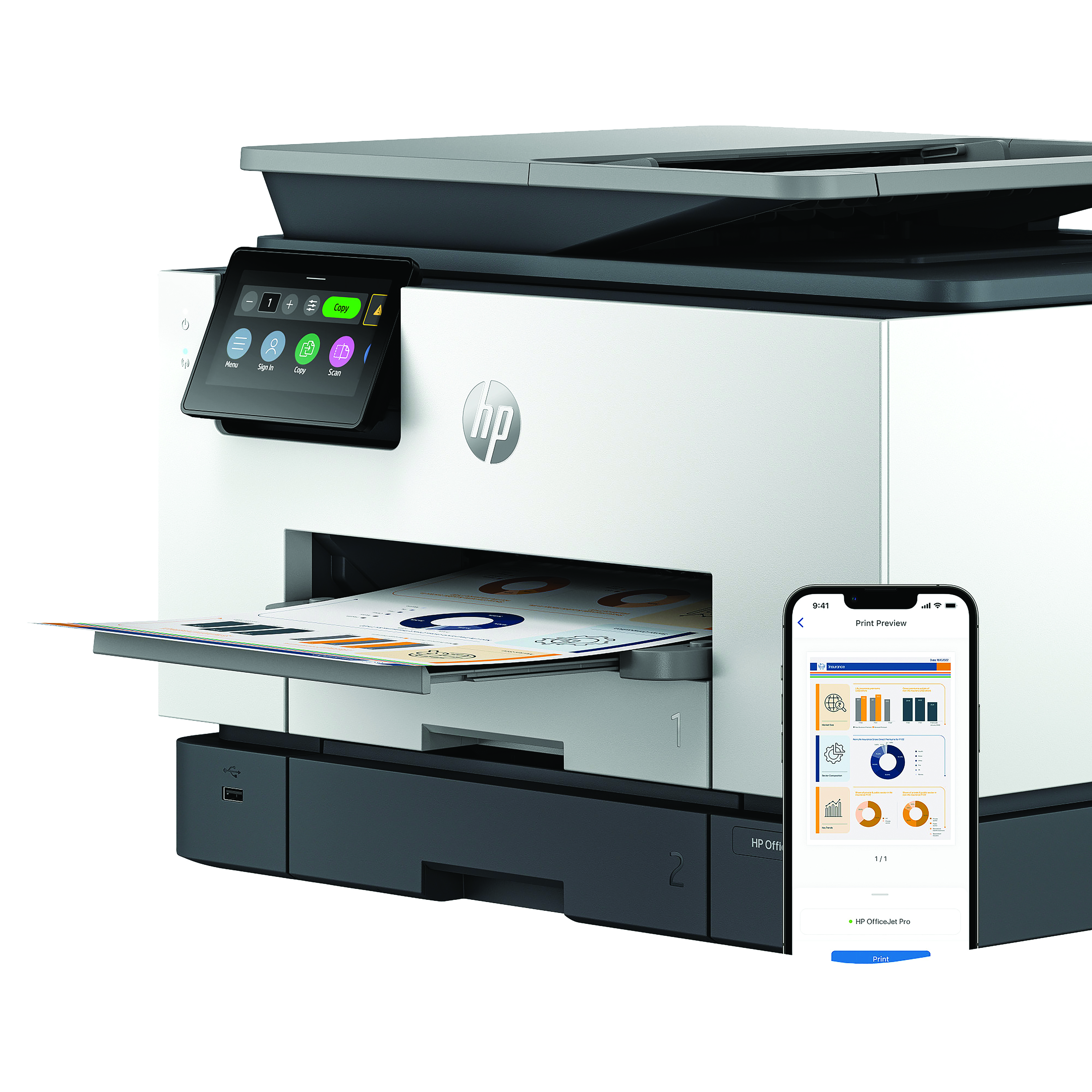 The professional colour inkjet printer for distributed offices/hybrid workforce from HP, paired with our best technology to help manage it all. This streamlines work into any network with extra performance features. This printer is intended to work only with cartridges that have a new or reused HP chip, and it uses dynamic security measures to block cartridges using a non-HP chip. Periodic firmware updates will maintain the effectiveness of these measures and block cartridges that previously worked. A reused HP chip enables the use of reused, remanufactured, and refilled cartridges.