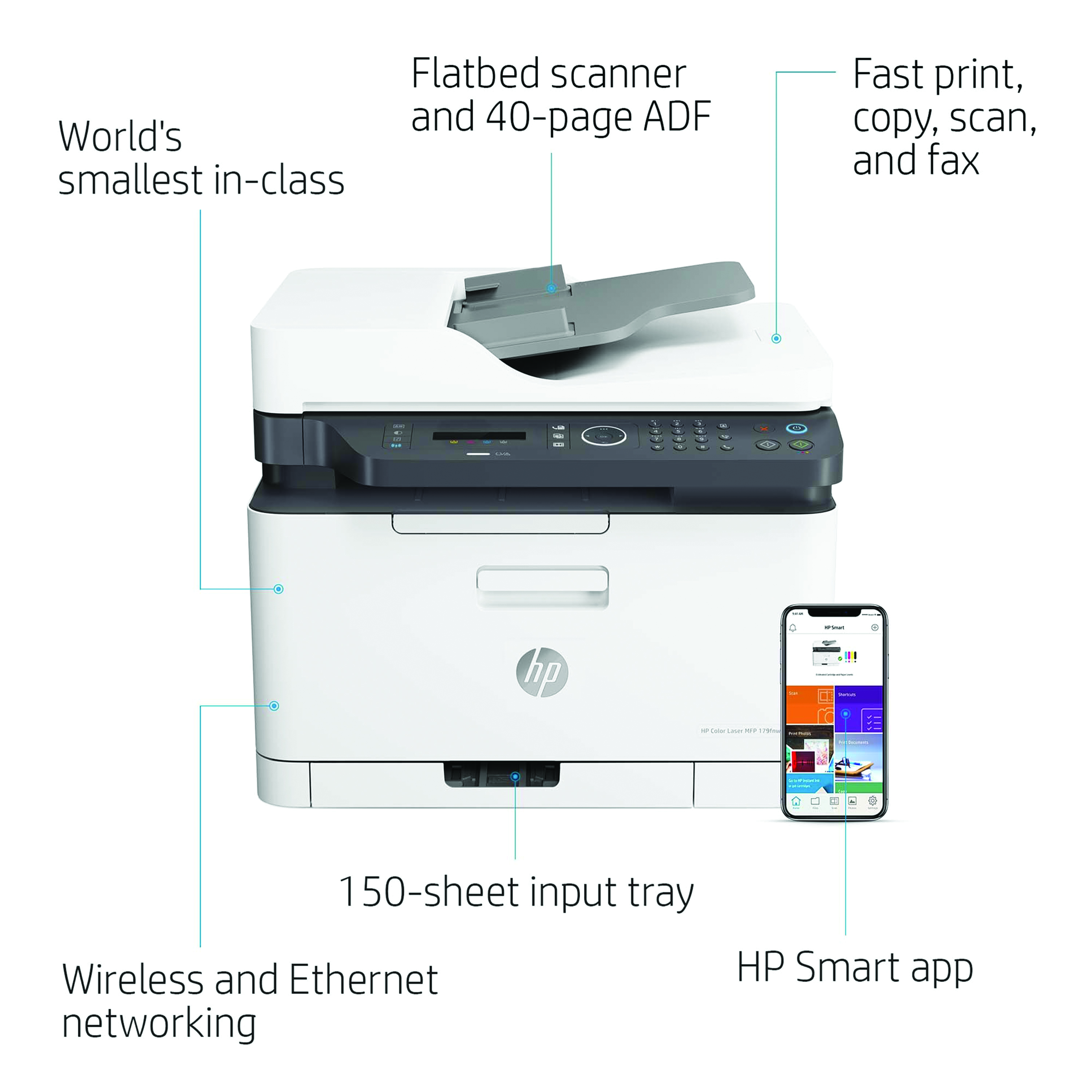 Print, scan, copy and fax with ease with the HP Colour Laser 179FNW, producing high quality colour results and print and scan from mobile devices. This compact, dynamic, security enabled printer is suitable for printing a recommended monthly volume of up to 500 pages/month, offering print speeds of up to 18 pages per minute. This printer is intended to work only with cartridges that have a new or reused HP chip, and it uses dynamic security measures to block cartridges using a non-HP chip. Periodic firmware updates will maintain the effectiveness of these measures and block cartridges that previously worked. A reused HP chip enables the use of reused, remanufactured, and refilled cartridges.