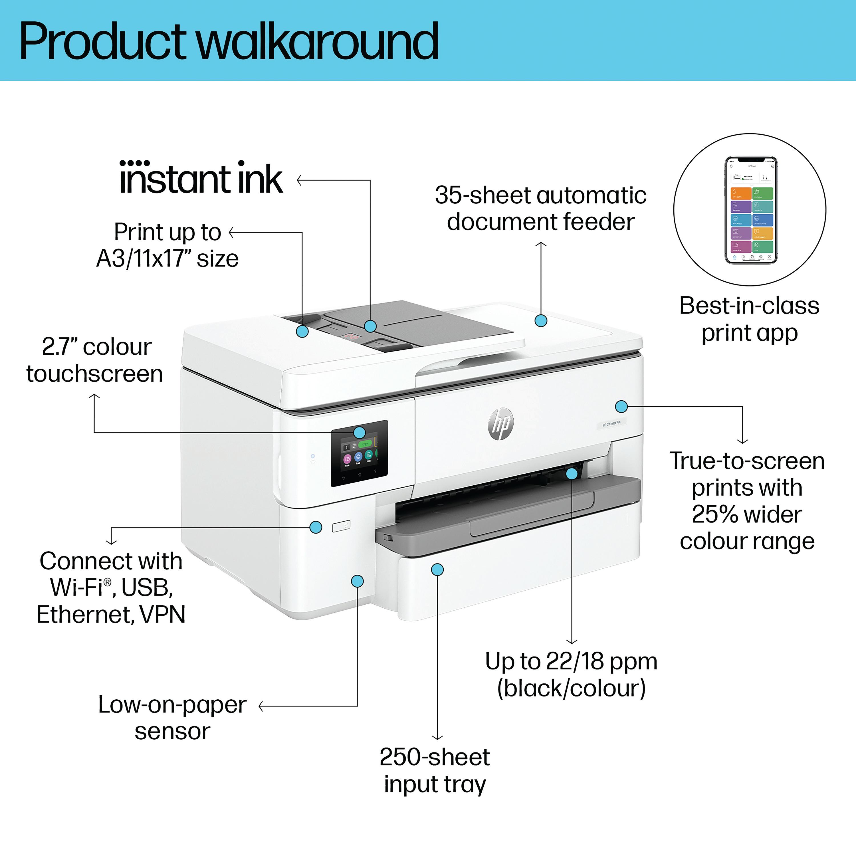 HP OfficeJet Pro 9720e A3 Wide Format 3-in-1 Wireless Colour Inkjet Printer 53N95B#687