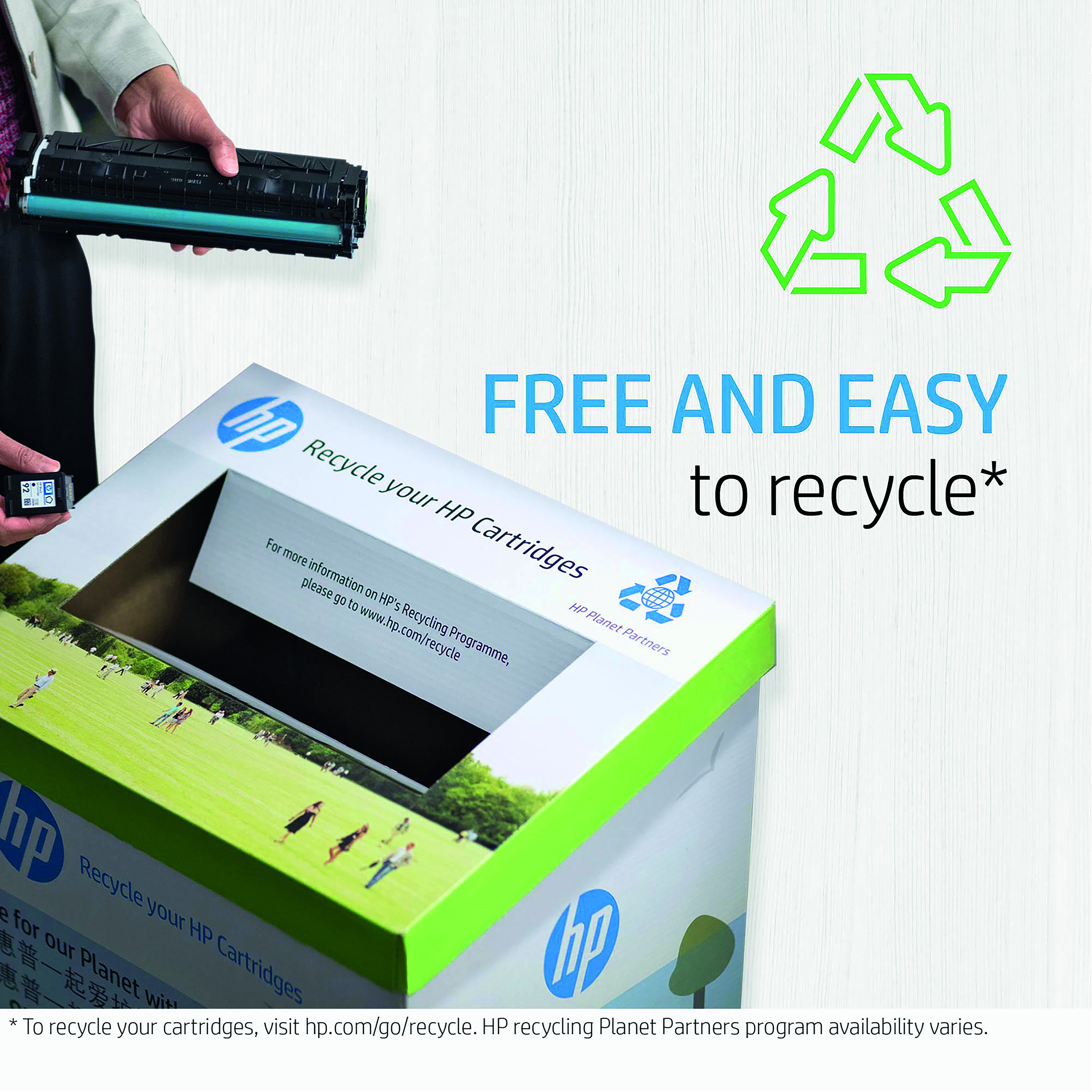 Materials from recycled HP cartridges are used to manufacture new Original HP cartridges and help reduce plastic waste